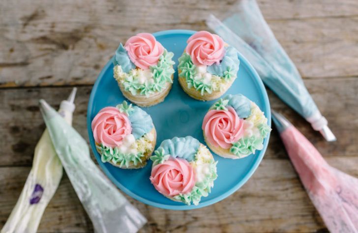 Using a 104 tip, make a circular start in the center of the cupcake. Have fun professionally decorating your cupcakes (source: You can also use this trick on larger cakes, turning the entire outer layer into beautiful buttercream roses. These easy cupcake decorating techniques require cupcakes, buttercream and decorating tips. All you need is a piping bag.